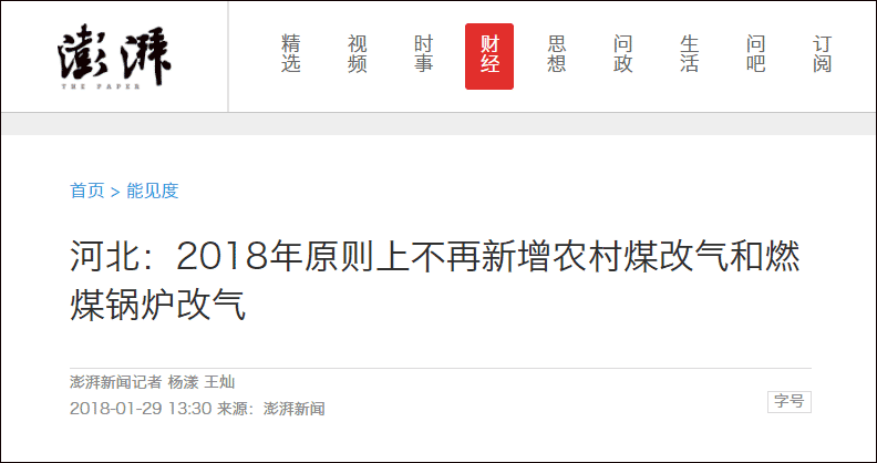 1月29日獲悉,河北省發(fā)改委已于近日下發(fā)文件,要求“除2017年結轉的農村煤改氣任務外,2018年原則上不再新增農村煤改氣和燃煤鍋爐改氣”。