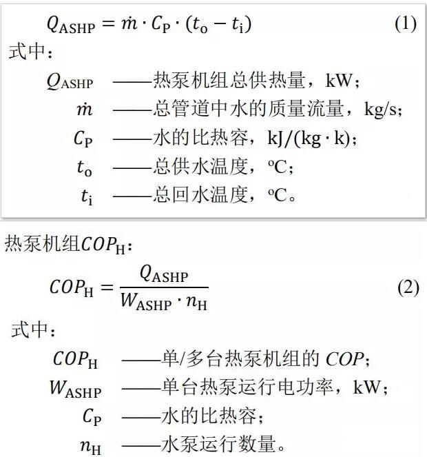 1)單/多臺(tái)熱泵機(jī)組性能評(píng)價(jià)指標(biāo)熱泵機(jī)組總供熱量QASHP: