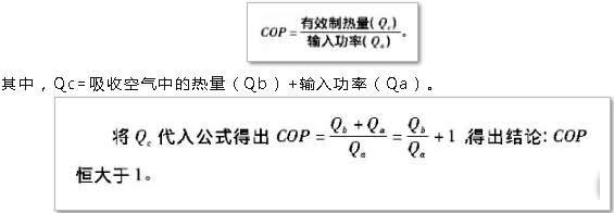 空氣作為可再生能源是取之不盡、用之不竭的天然資源。而熱泵技術(shù)是利用輸入少量的電能,從空氣中獲得高于輸入電能2倍~5倍的熱能來加熱被加熱對象,實現(xiàn)供熱的目的。空氣源熱泵工作中吸取空氣中的熱量是免費的,而輸出的熱能是以它為主的,根據(jù)熱泵制熱性能系數(shù)公式: