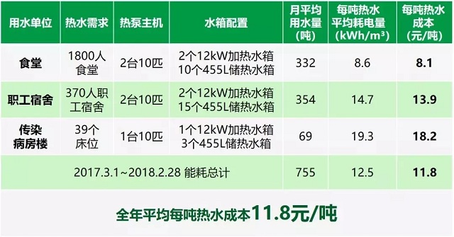 根據(jù)該人民醫(yī)院要求,分別對食堂、職工宿舍及傳染病房樓設(shè)置獨立的點對點的空氣源熱泵熱水系統(tǒng),不改變原先的閉式供水系統(tǒng)形式,改造后的系統(tǒng)需完全滿足日常熱水需求,并留有設(shè)計余量。由于空氣源熱泵所具備的優(yōu)勢和特性正好可滿足該要求,該人民醫(yī)院最終決定通過“節(jié)能效益分享型合同能源管理的模式”,對部分功能區(qū)(食堂、職工宿舍及傳染病房樓)實施了熱水系統(tǒng)改造,并選用了“5套10匹承壓式熱泵熱水系統(tǒng)”,分別供應(yīng)醫(yī)院食堂、職工宿舍及傳染病房樓熱水,并簽訂了為期5年的節(jié)能效益分享型能源管理合同。