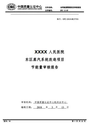 結(jié)合“中國質(zhì)量認證中心”出具的《XXXX人民醫(yī)院東區(qū)蒸汽系統(tǒng)改造項目節(jié)能量審核報告》,按用能單位提供的項目改造前后設(shè)備能耗及雙方確認的能源價格,項目實施前年耗蒸汽量為3633.59t,折合325.74噸標準煤;項目實施后年節(jié)能量為278噸標準煤,年節(jié)能效益為57.4萬元。