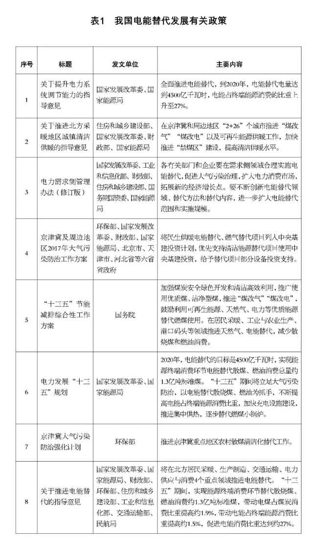 黨中央、國務院高度重視電能替代工作,2016年5月,國家八部委出臺了推進電能替代的指導意見,將電能替代上升為國家戰略。相關部委先后出臺了支持北方地區冬季清潔取暖試點、推進京津冀及周邊地區大氣污染防治等支持政策,將電能替代作為國家“十三五”電力發展規劃和現代綜合交通運輸體系發展規劃的重要內容,為電能替代發展營造了良好的政策環境。