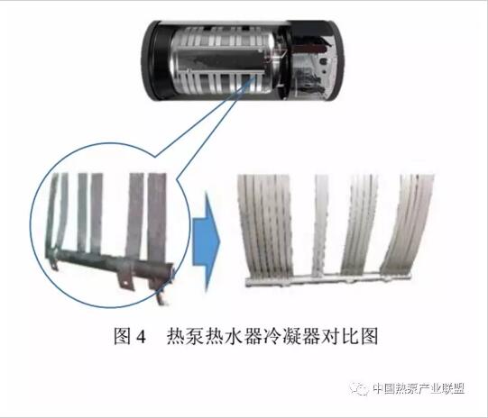 (2)對于熱泵熱水器冷凝器而言,在成本基本不變的情況下,采用16mm扁管替代原機25mm扁管冷凝器,扁管之間間距更小,與儲水箱的貼合面積更大,能有效提高整機能效0.3左右,能效等級方面可以提升1~2個等級,加熱速度也略有加快。