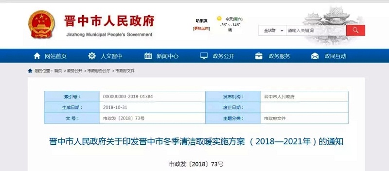 晉中市冬季清潔取暖實施方案(2018—2021年)